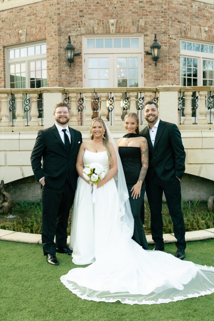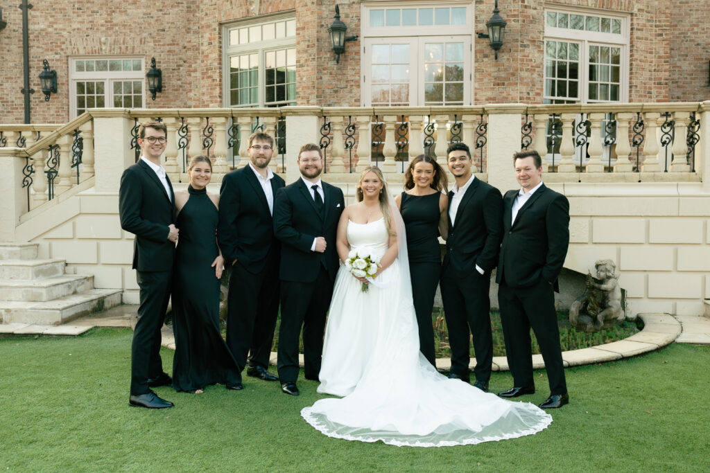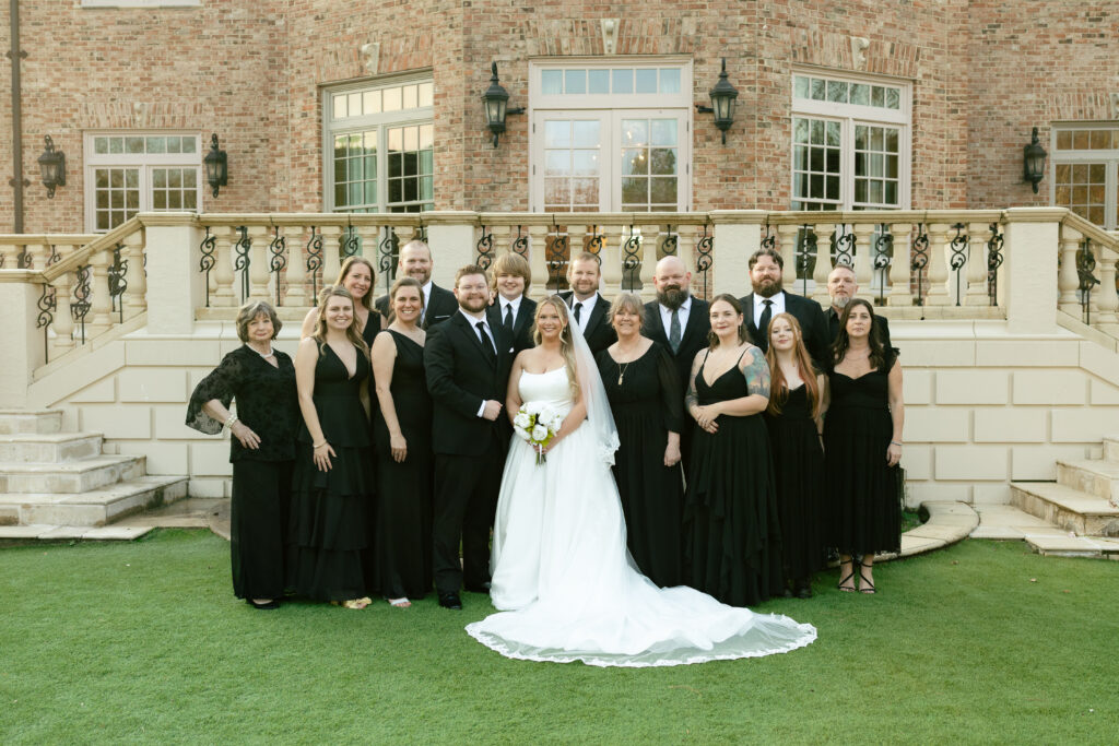 After the ceremony, family and friend portraits were taken directly in front of the mansion. The grand façade of Fountainview Mansion provided a clean, classic backdrop that will never feel dated—one of the biggest advantages of choosing a historic wedding venue in Alabama.