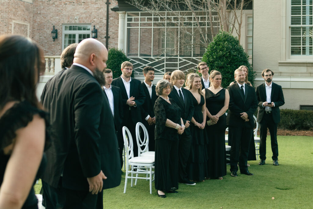 Kayde and Ethan envisioned a wedding day that felt elevated yet deeply personal. Choosing to host a smaller guest count allowed them to focus on meaningful moments and refined details rather than excess. Guests arrived dressed entirely in black, creating a cohesive and striking aesthetic that immediately set the tone for the day.