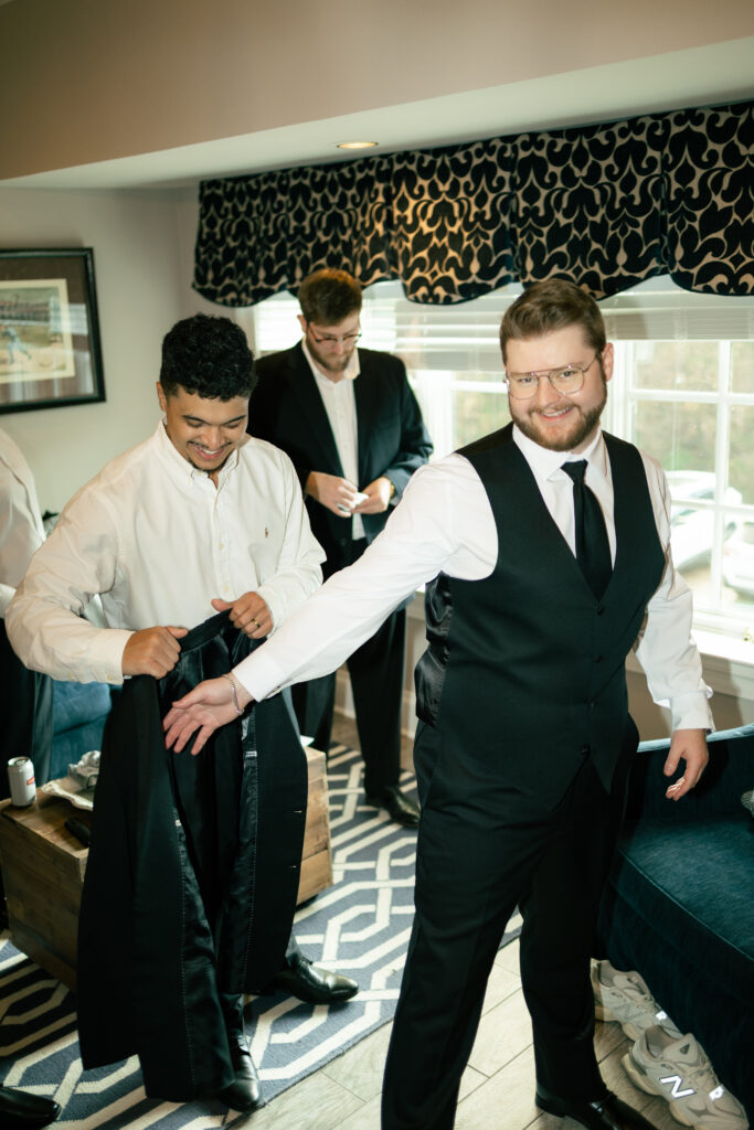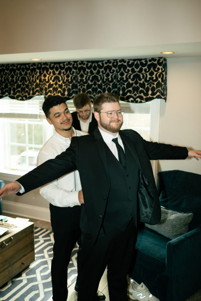Ethan and his groomsmen prepared nearby in the groom’s suite, sharing laughs and finishing touches before the ceremony. The proximity of the suites made the entire morning flow seamlessly—another reason Fountainview Mansion is perfect for luxury weddings in Auburn.